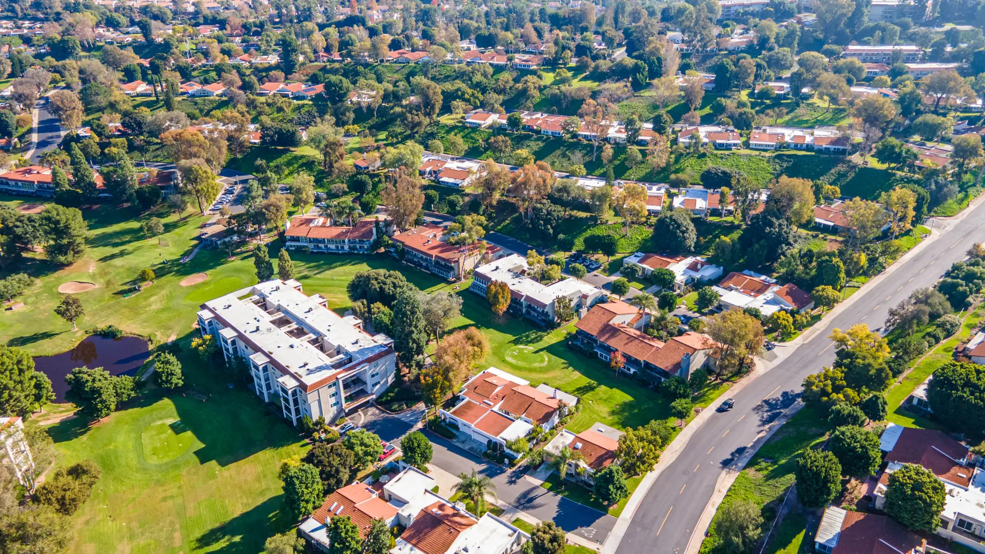 Laguna Woods Village includes a variety of building styles and settings. Some homes look out over greenbelts or golf course views, others are tucked into quieter cul-de-sacs.